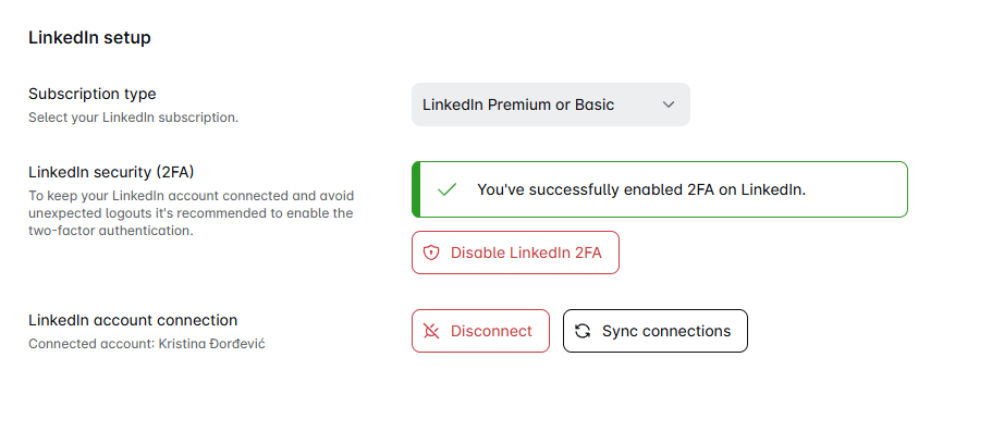 Your LinkedIn 2FA is now active and synced with Leadslinkin. From now on, we’ll take care of the codes so you can focus on crushing your outreach 🚀