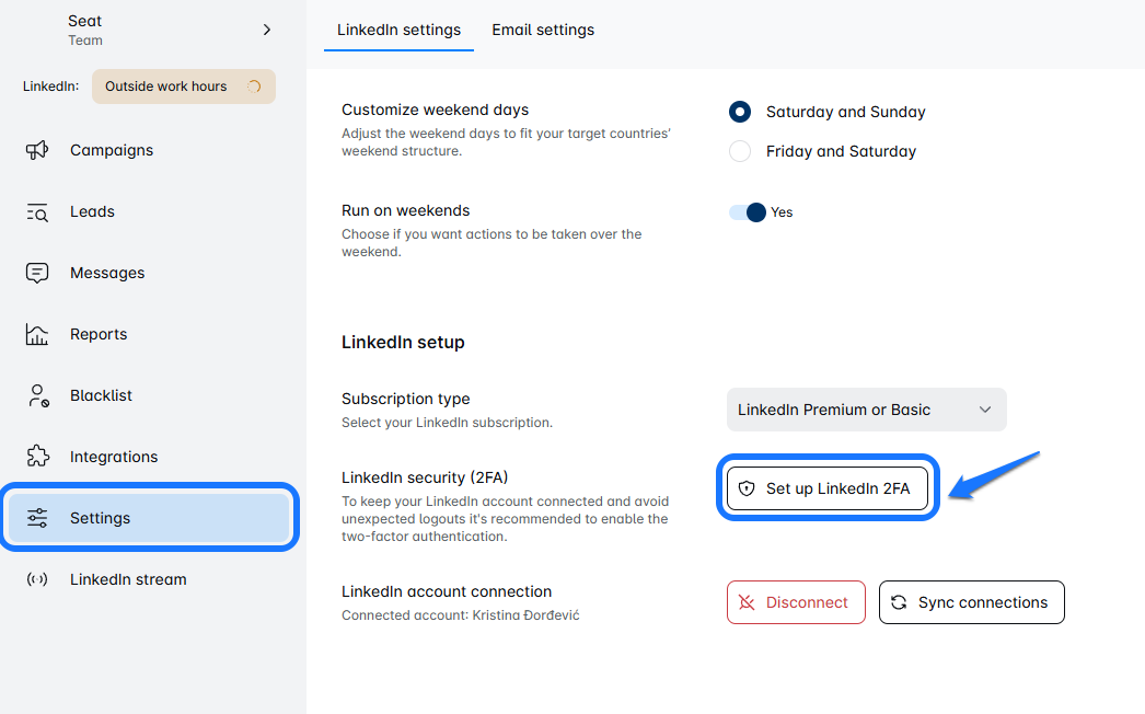 1. Open LinkedIn 2FA Settings in Leadslinkin ⚙️