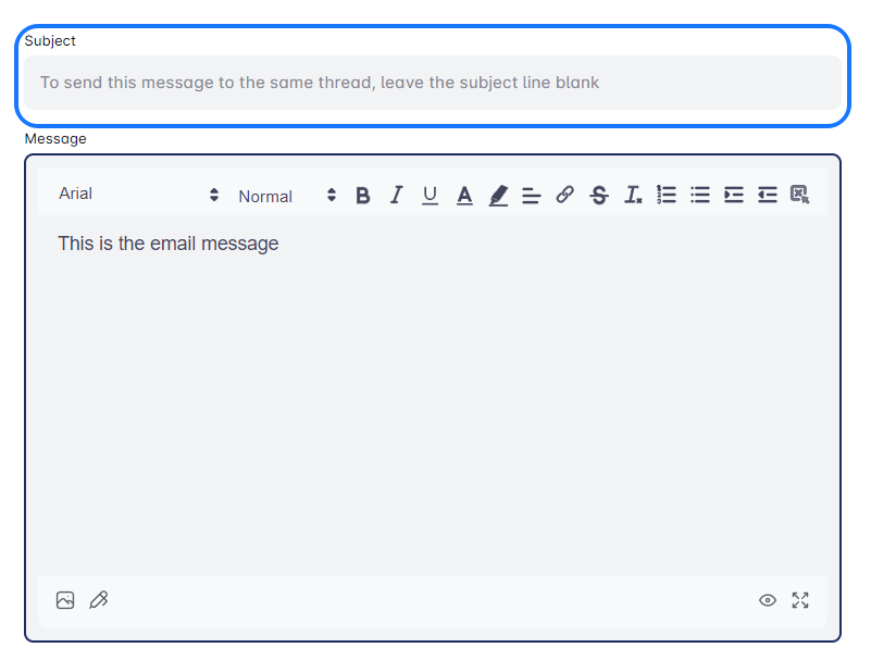 - If you want to send emails in the same thread, leave the Subject line blank.